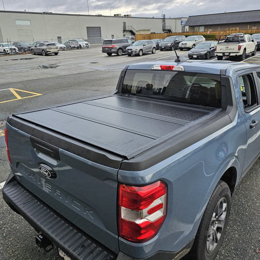 Aluminum Low Profile Hard Four-fold Tonneau truck bed Cover Matte Black Compatible with F150 RAM 1500 TACOMA Maverick