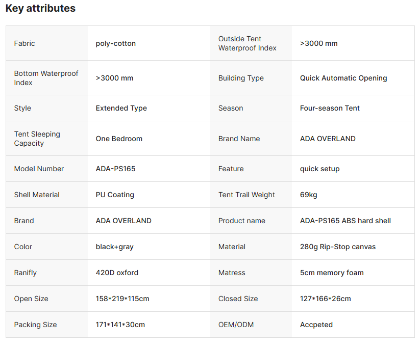 ADA-PS165 ROOF TOP TENT