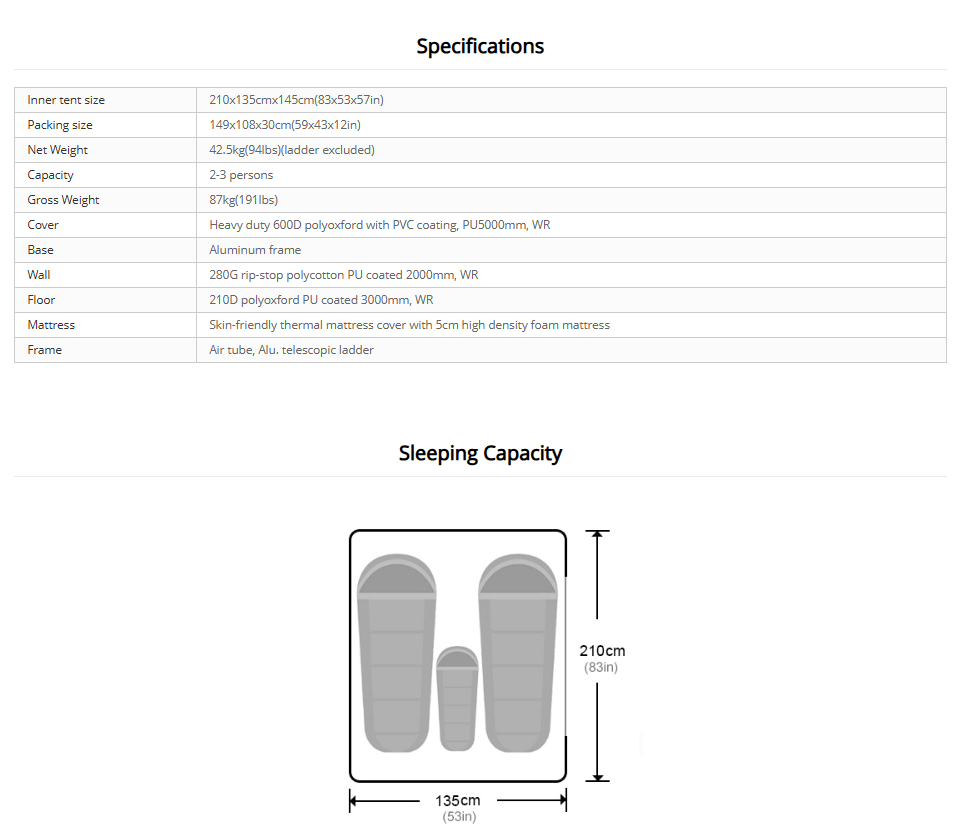 Model No.: Air Cruiser Description:The very first air tube mechanism roof tent of Wild Land. With the idea of “Making every scenic spot become your private courtyard”, we perfectly integrates home and poetic dwelling through “movable house” as the design concept , the creation of a tall and spacious interior space, convenient and fast innovative storage, and a functional design full of security. Features With built-in air pump, no worry about missing air pump or extra space to store it Battery free air pump, safely powered by cigar lighter or power bank Air tube is 5-layer protected, shock resistance and scratch resistance Patent double-eave design, reduce wind resistance, great for shading, drainage, and rain protection Spacious inner space with 1.45m height when tent opened for extra comfort Two skylight roof windows with curtain for great night view Great ventilation with large mesh door and windows, and air vents Lightweight and compact size design Withstand level 7 gale (15m/s) wind and rain test Dimmable ultra-long U-shaped LED light strip to create a warm atmosphere.